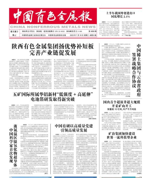 【学思想 强党性 重实践 建新功】陕西有色金属集团:扬优势补短板 完善产业链促发展|陕西省_新浪财经_新浪网 (sina.com.cn, http://sn.people.com.cn/n2/2023/0707/c186331-40485571.html ;https://paper.cnmn.com.cn/Content.aspx?id=180448&q=4868&v=1 )