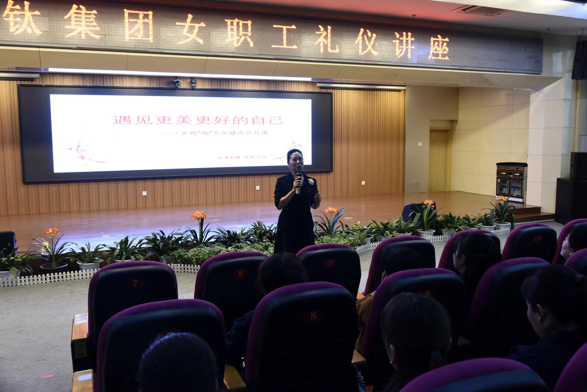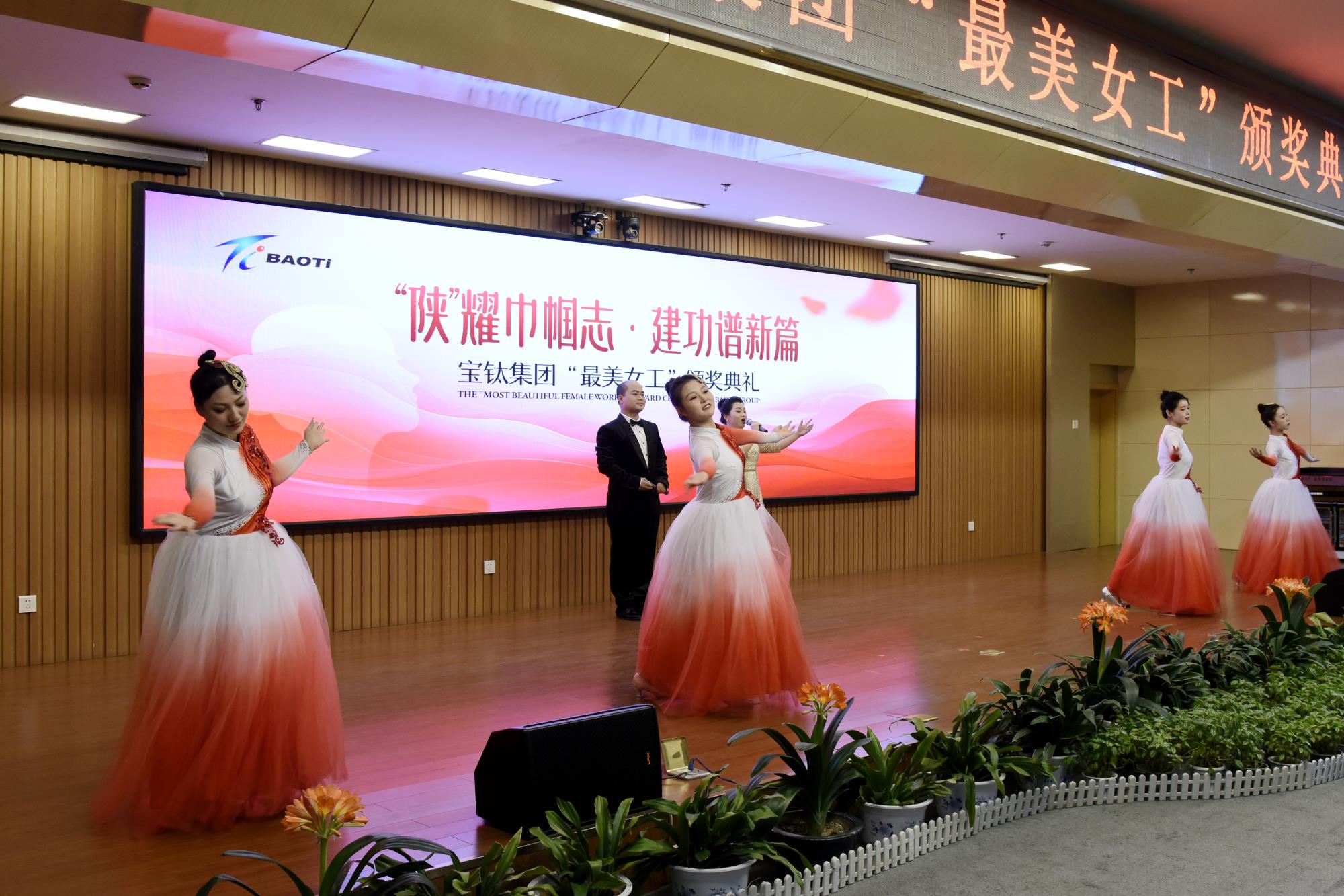 典礼通过短视频形式,生动展现了六位“钛美人”的铿锵风采。毛丽娟代表“最美女工”发言,发出了在平凡岗位中争做时代巾帼的号召。精彩的独唱《世界赠予我的》、传统京剧《智取威虎山》、歌伴舞《春风十万里》充分展示了女工多才多艺的精神风貌。典礼结束后,宝钛集团工会女职委还特邀礼仪专家带来了一场别开生面的女职工礼仪讲座。