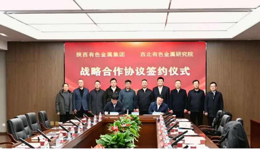 2月4日,陕西有色金属集团与西北有色金属研究院战略合作协议签约仪式在西北有色金属研究院创新大楼会议室举行。中国工程院院士、西北有色金属研究院院长张平祥,陕西有色金属集团党委书记、董事长吴群英出席仪式并见签。西北有色金属研究院党委书记李建峰,陕西有色金属集团党委副书记、总经理莫勇代表双方签约。
