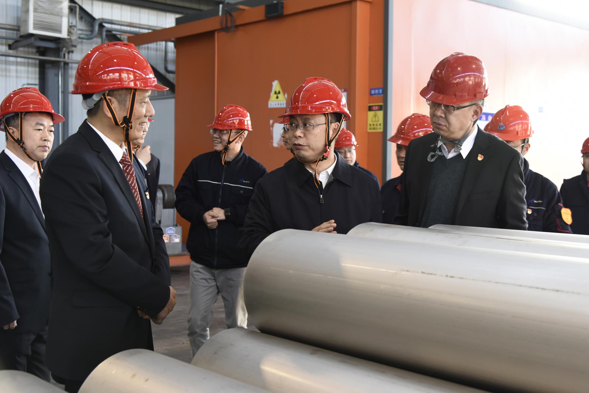 吴群英一行先后来到特种金属公司管道生产线、装备制造公司、1850宽幅热轧产线智能控制中心,详细了解相关产业发展、设备运行、技术工艺、应用领域及市场开发等情况,并检查安全生产工作,随后召开座谈会听取宝钛集团工作汇报。