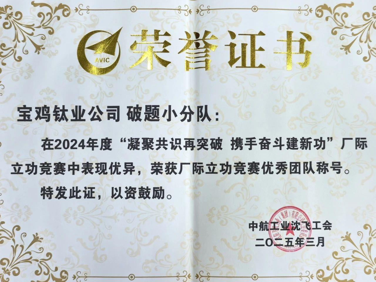 宝钛股份荣获沈飞2024年度厂际立功竞赛多项殊荣