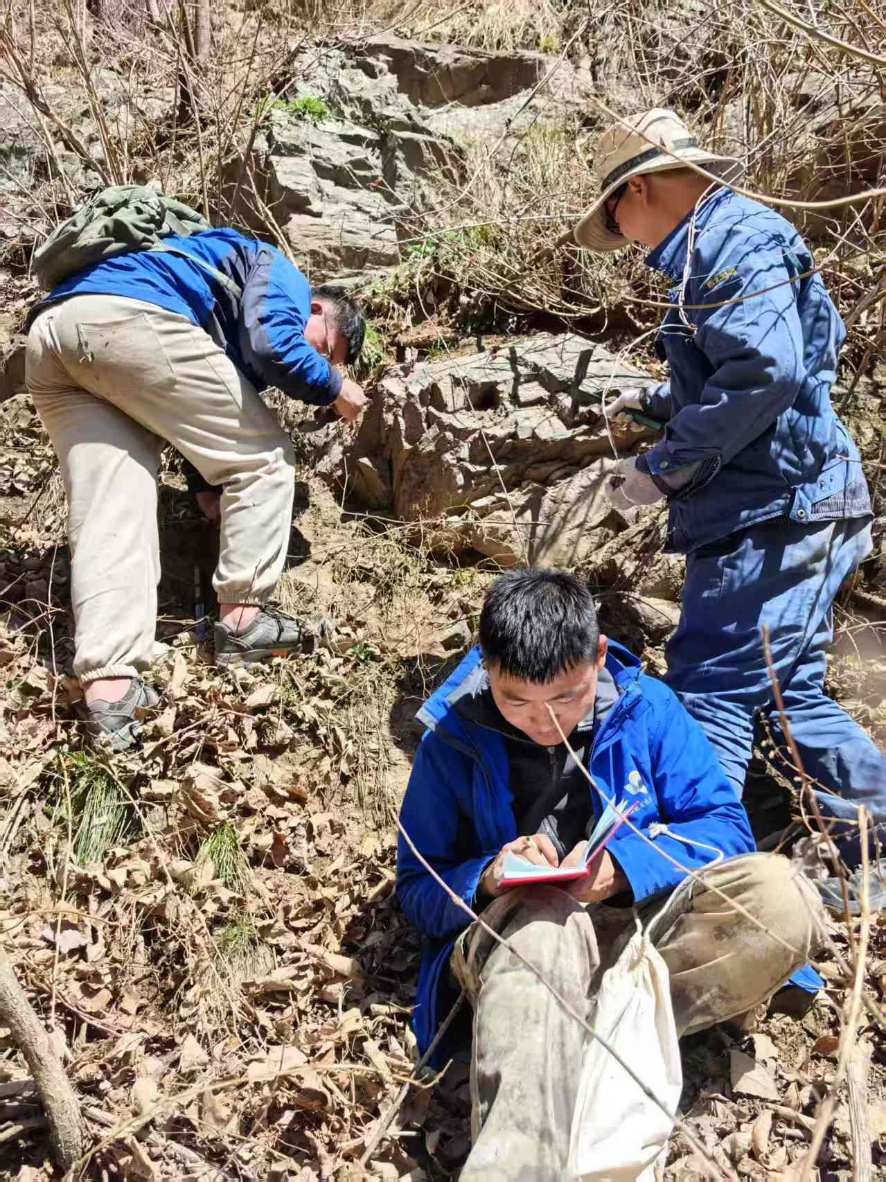 ▲地质队员正在进行野外编录