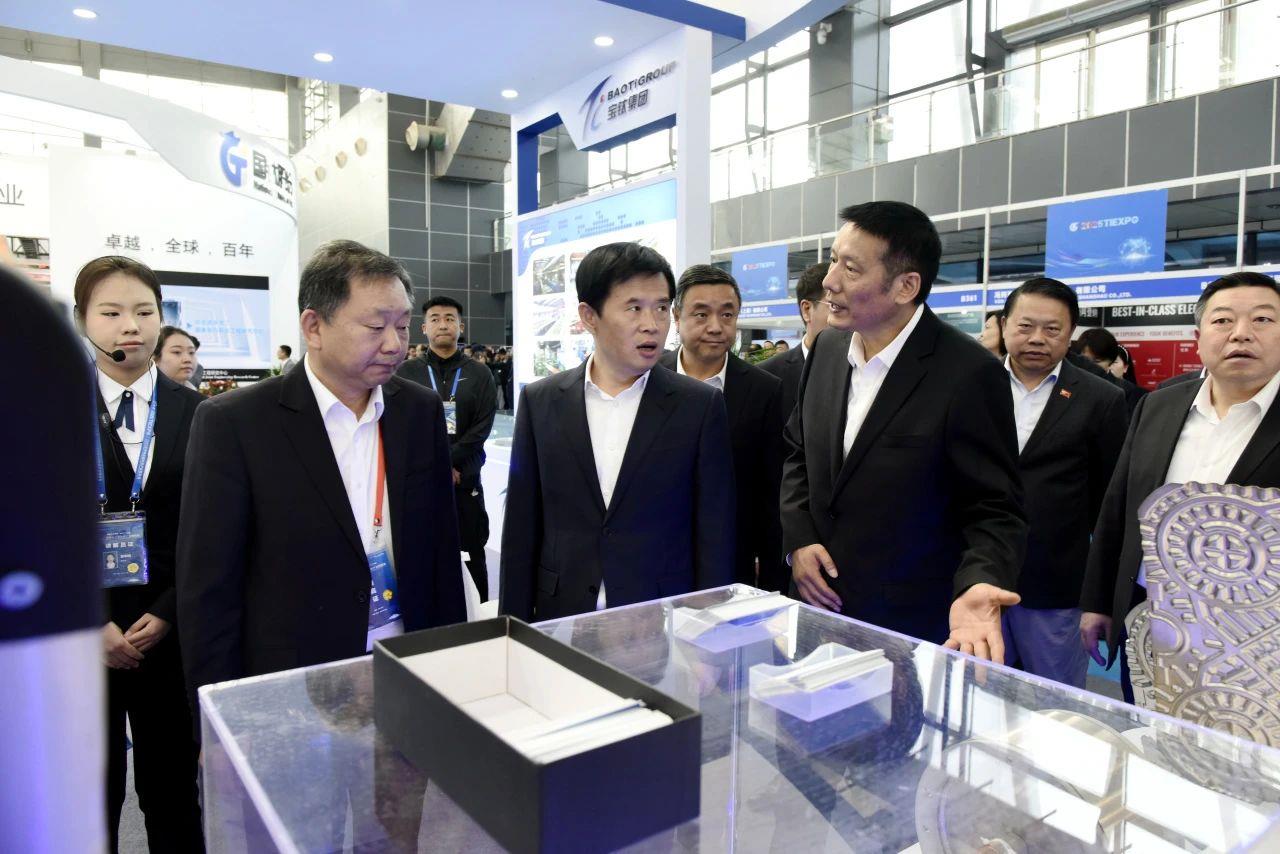 会议结束后,与会领导和嘉宾进入展览馆巡馆。一时间,展览馆内行人如织,宝钛展台前更是人头攒动,他们对宝钛展品表现出浓厚兴趣并给予高度评价。