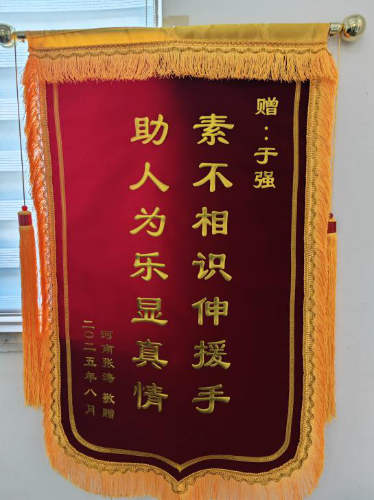 当天下午14时许,原本平静的海面暴雨骤至。安阳一家四口被猛烈的离岸流裹挟,迅速漂向深海。危急时刻,于强与三名游客不顾个人安危,毅然冲入滔天巨浪中展开救援。浊浪如墙,一次次将他们吞没,但他们始终紧抓遇险者,奋力抗争。于强在惊涛骇浪中死死抓住那位母亲的游泳圈,拼尽全力向岸边拖拽;其余三人则分别救起父亲和两名孩子。经过近半小时的殊死搏斗,一家四口被平安送回岸边。精疲力竭的于强在确认被救者无碍后,默默离开了现场。近日,被救家属将感谢信和锦旗送至于强所在单位宝钛集团动力公司,他的英勇事迹才被众人知晓。