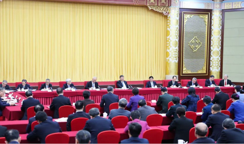 中共中央政治局常委、全国政协主席王沪宁,中共中央政治局常委、中央办公厅主任蔡奇参加看望和讨论。