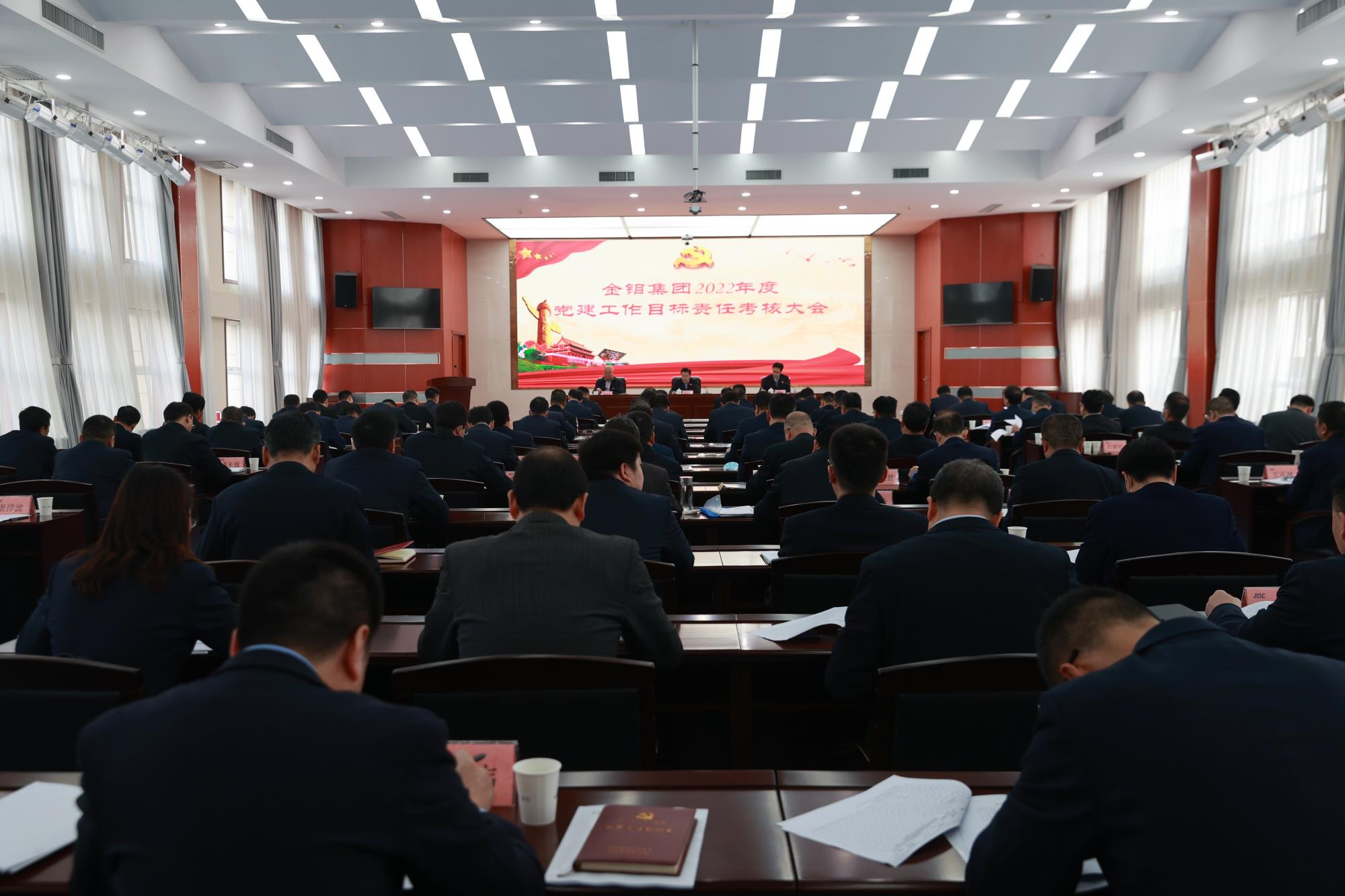 3月28日,陕西有色金属集团党委副书记郭仕龙带领考核组一行来到金钼集团开展2022年度党建工作目标责任考核。陕西有色金属集团总经理助理、党委组织部部长孟钢主持考核会。金钼集团领导班子成员、中层干部正职、二级单位主要负责人,以及部分中层副职及职工代表90余人参加考核大会。